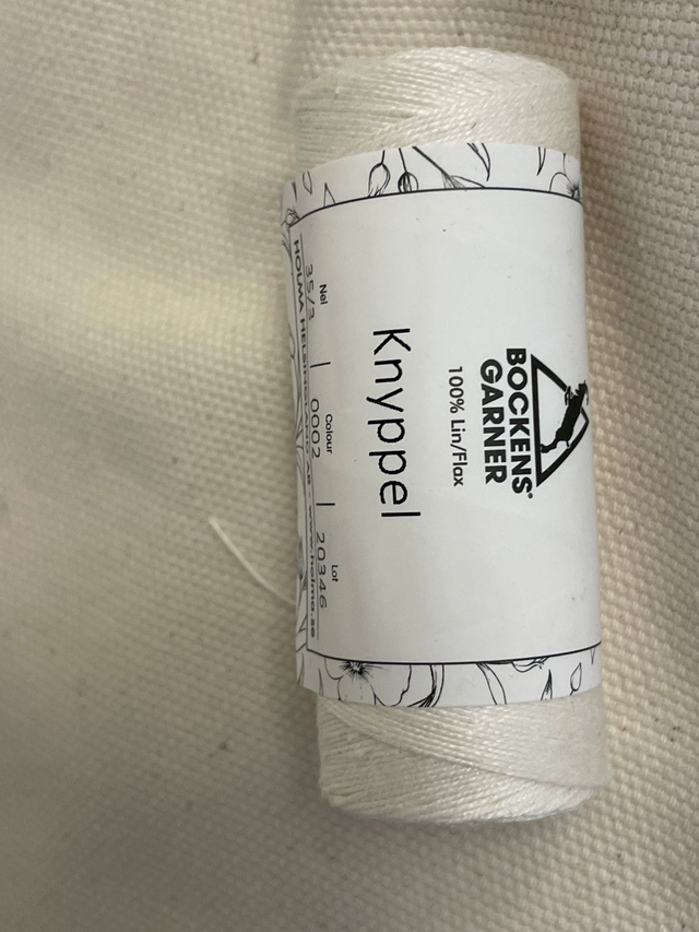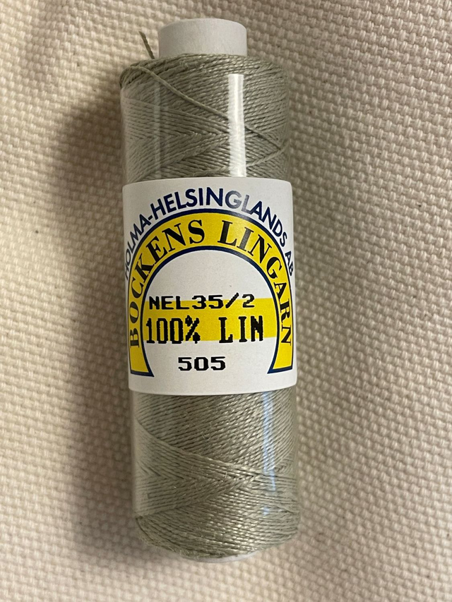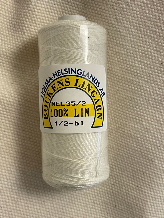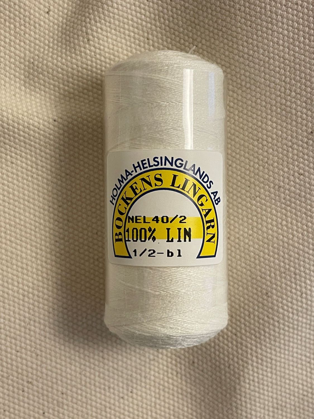 Hørtråd fra "Bockens" i Sverige. Denne fine hørtråd kan bruges til at brodere tællesyning, hulsømme, Damasksyning, hedebosyning og flere andre teknikker.