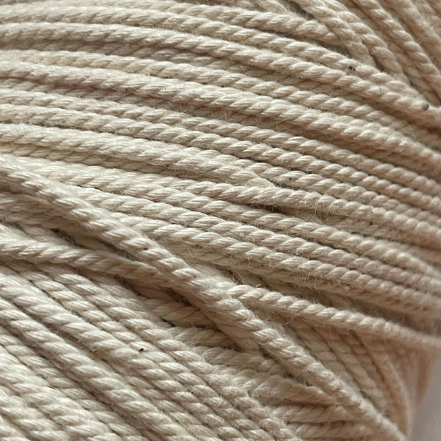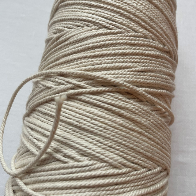 Makramé bomuldssnor fra Holma-Helsinglands AB. Denne stærke snor bruges til opspænding af syrammer, særligt til guldbroderi.